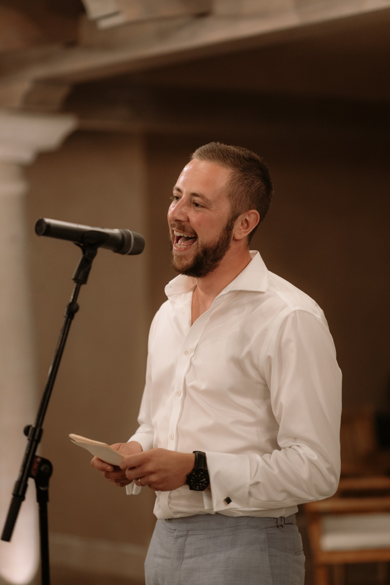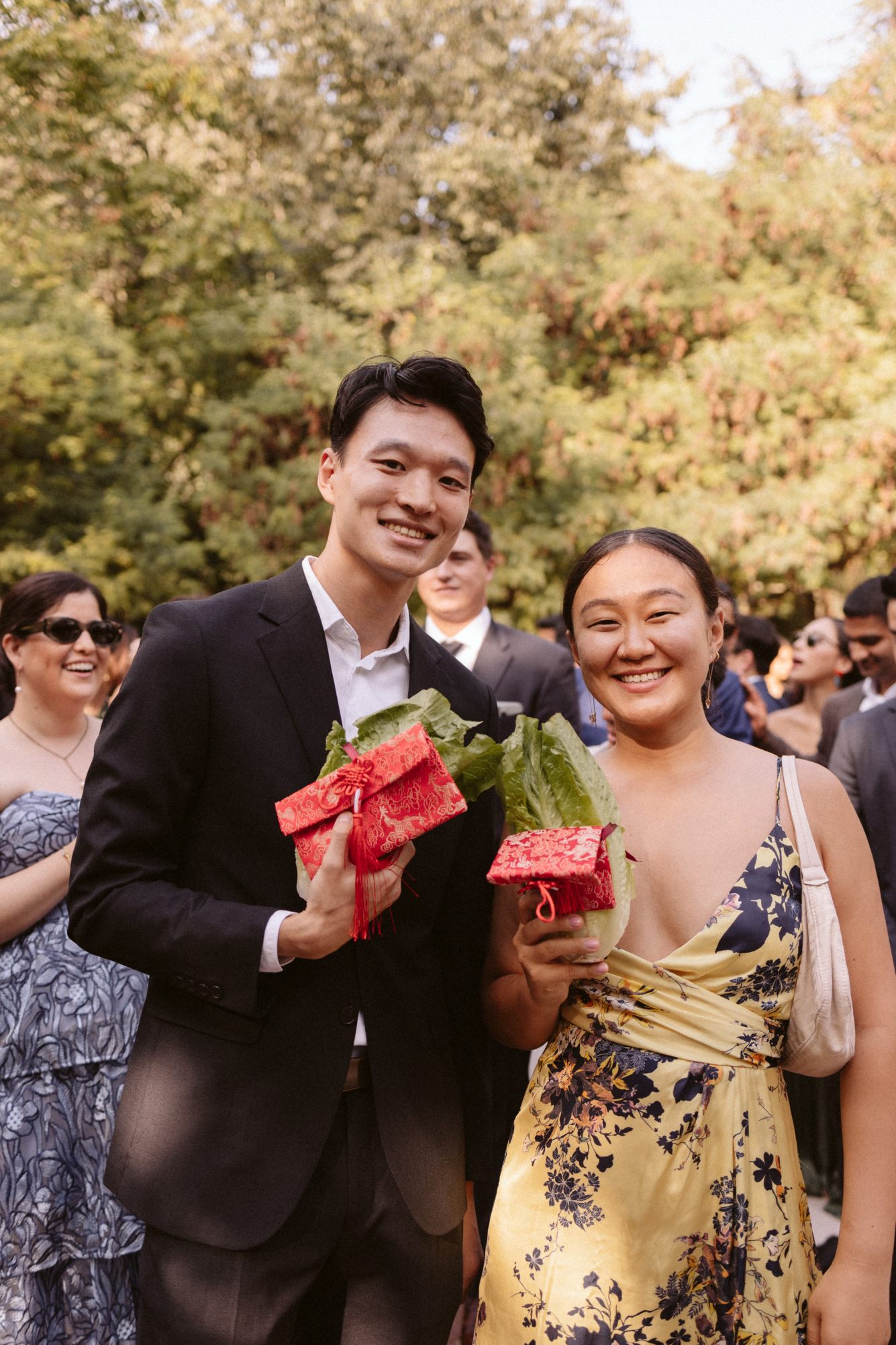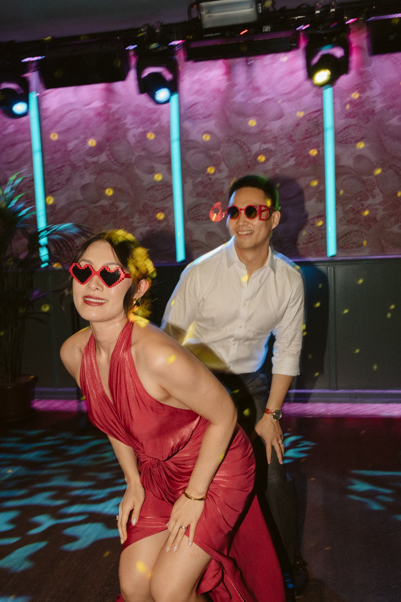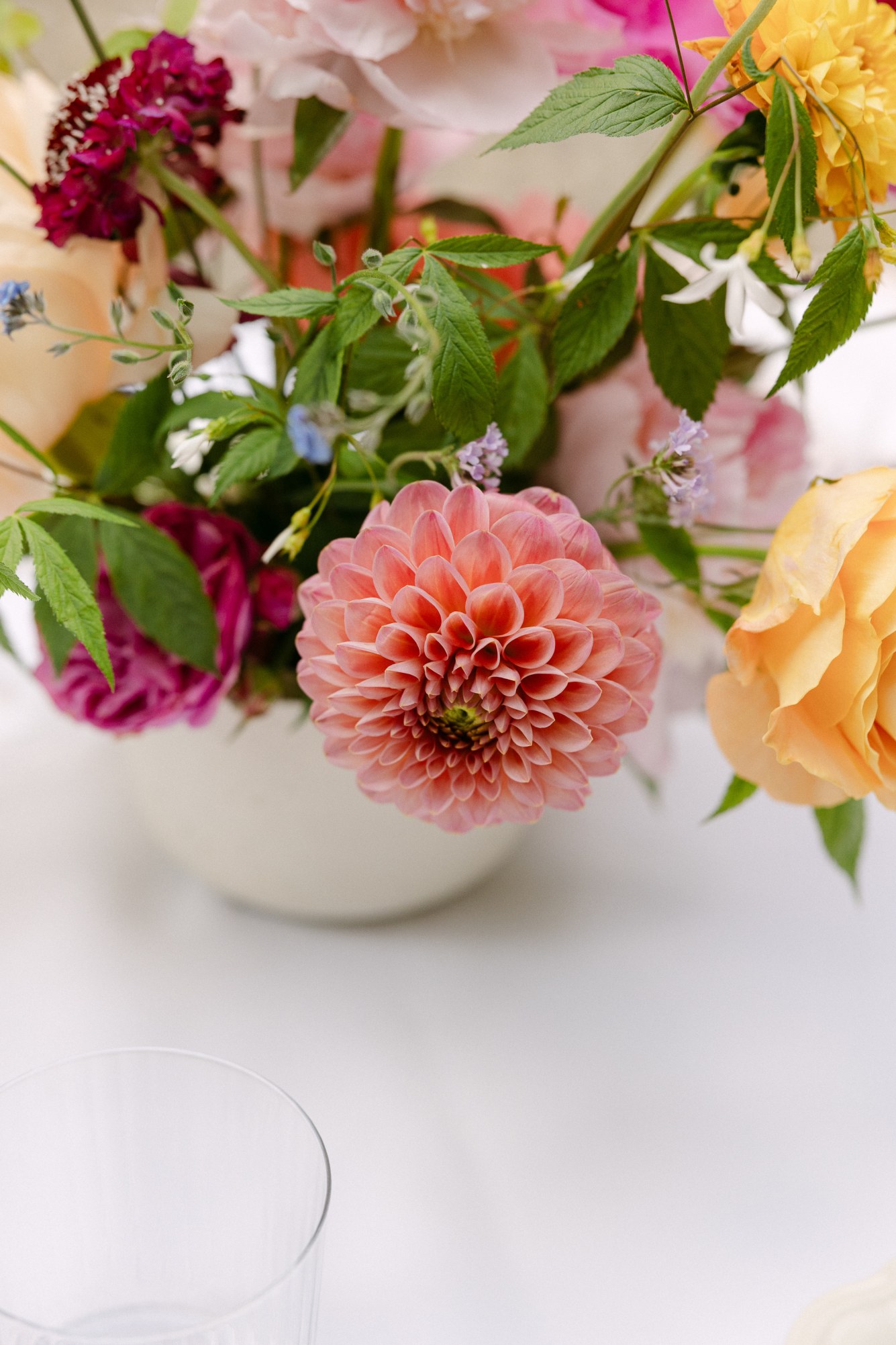 The florals were by Yolanda from Best Day Ever and she worked her magic, pulling inspiration from the venue’s beautiful lake and surrounding greenery. We wanted the space to feel like it was flowing right into nature, so we kept it organic, timeless, and, of course, green. The table scape played with contrasts; moss and sculptural florals with engraved JDN Paper coasters.
