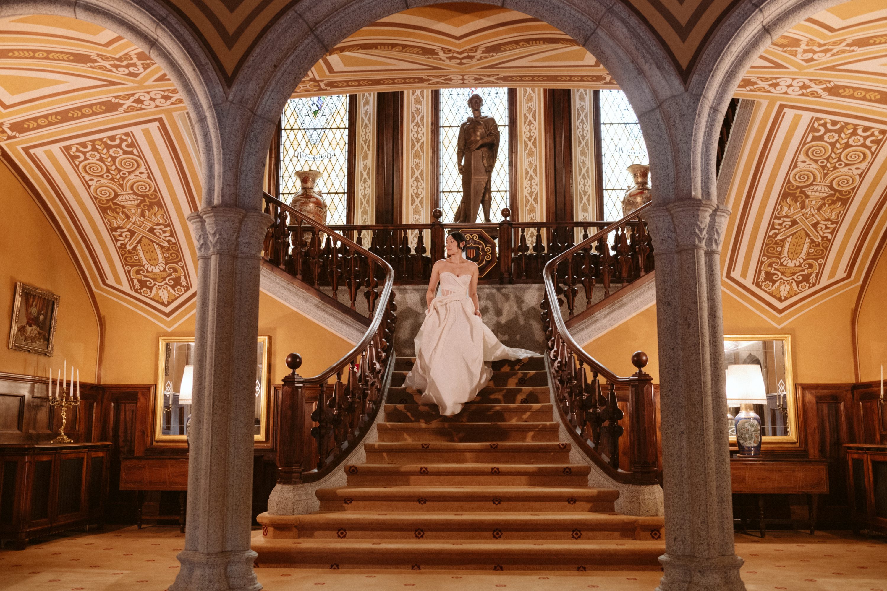 Alice & John, a lovely couple from London, were looking for an impactful and elegant venue to wow their guests, and we knew Bell Recó would be the perfect option. Friends and loved ones flew in from the UK, the US, and China to celebrate, and it turned into such a wonderful evening filled with hilarious speeches and plenty of dancing. Dutch Master paintings were the inspiration for the dinner tables, where we blended rich blue and burgundy tones.
