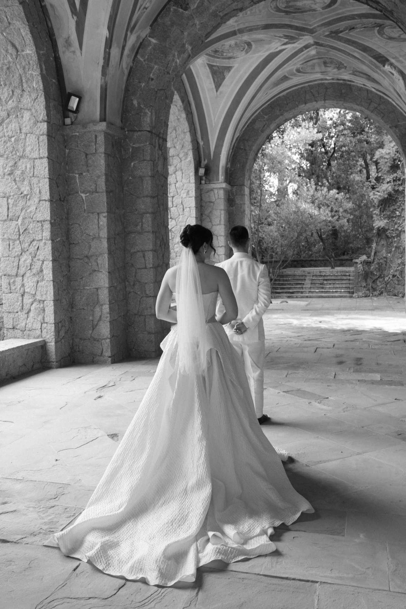 Photographer: Nina Wernicke | Planning & Design: Studio Marieta| Florist: Best Day Ever | Venue: Cava & Hotel Mas Tinell | Hair & MUA: Varvara Dediukhina | Stylist: Anastasiia Syomina | Bridal attire: Kaviar Gauche | Jewelry: Maramz | Menswear: Costume The Stylist Room | Stationery: JDN Paper | Linens: Nuovi Piatti