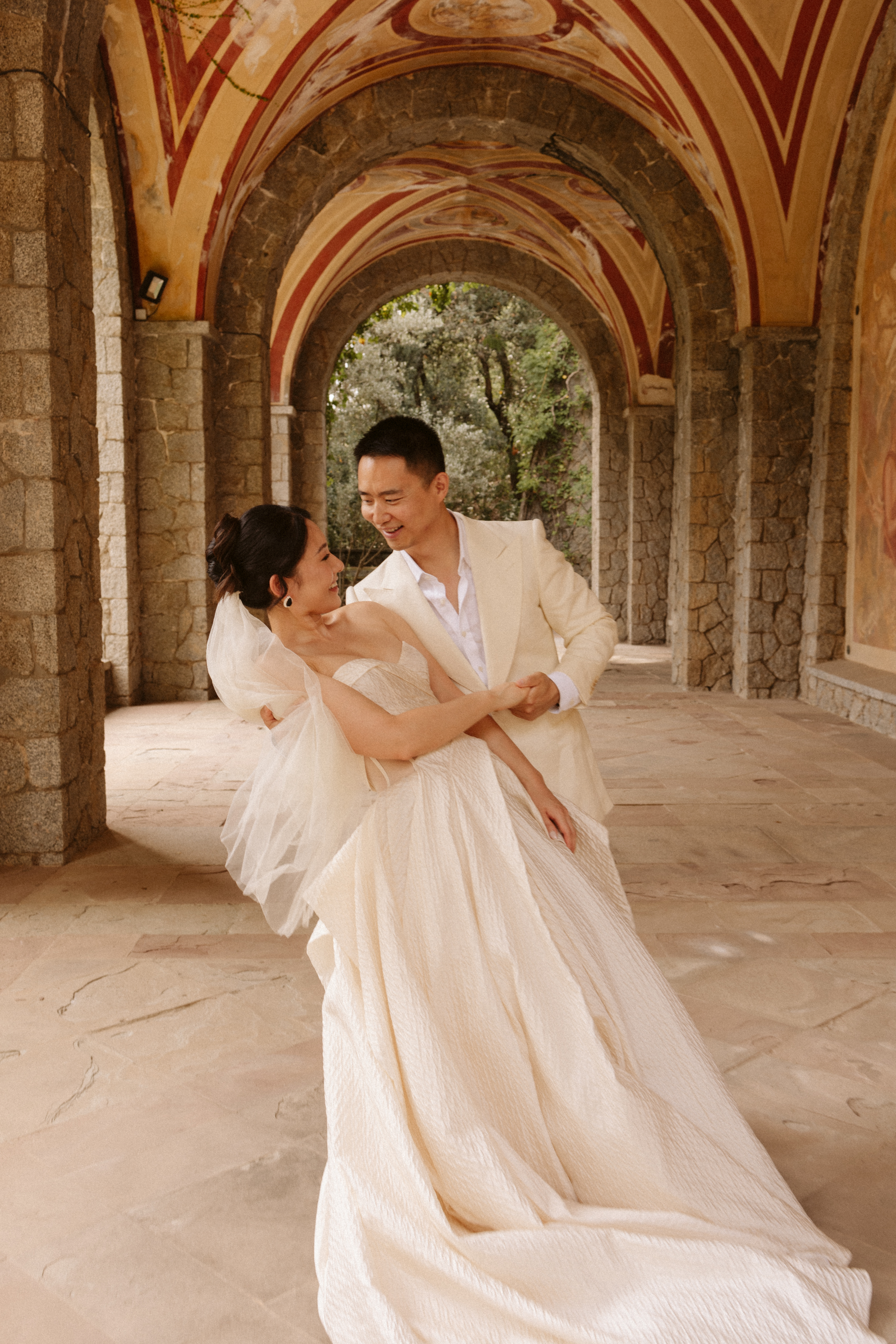 Amy & Josh, a fab couple from Melbourne, came to us wanting help to bring their dream wedding to life at Villa Almanita in Sitges. This 1800s farmhouse is basically the perfect mix of rustic charm and hidden-garden vibes, with lush greenery all around.
