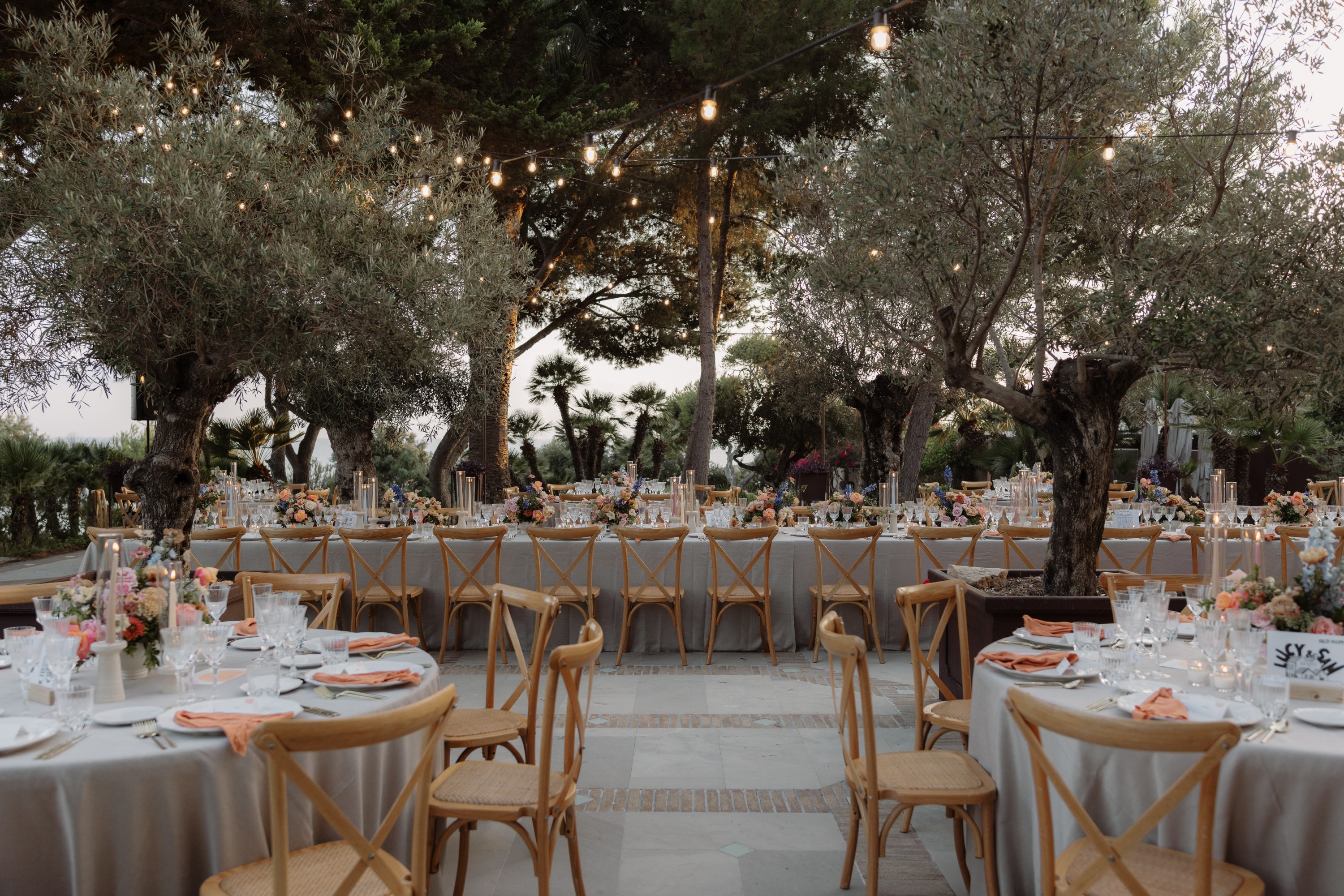 Cocktail hour usually takes place in the lush gardens, letting guests explore the grounds while enjoying the sea views, food, and drinks. In case of rain, a marquee tent or the indoor areas of the villa provide alternative spaces without losing charm.