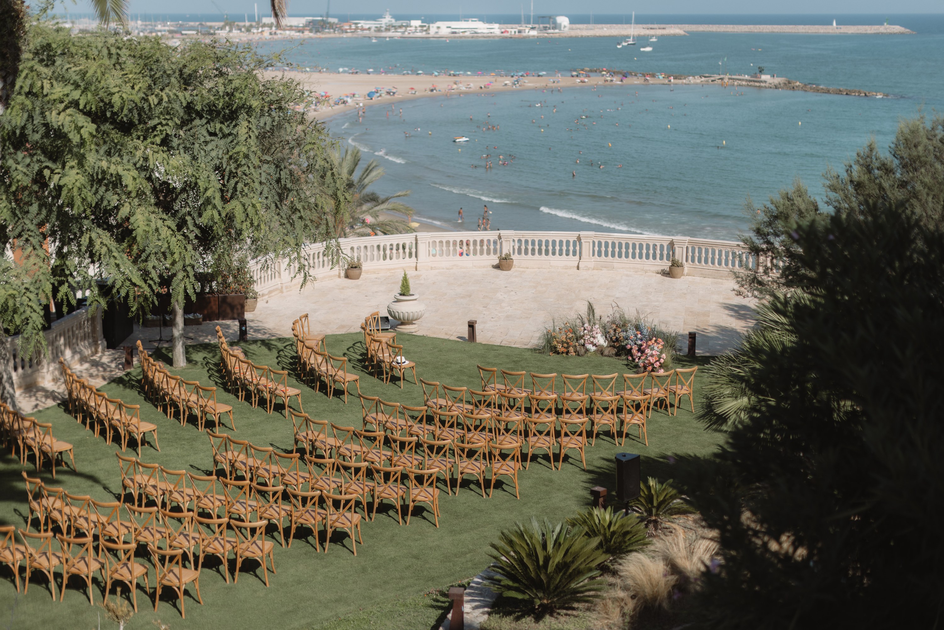 Xalet del Nin is an exclusive seafront villa offering breathtaking panoramic views of the sea. Located in Vilanova i la Geltrú, it’s just a 50-minute drive south from Barcelona, 15 minutes from Sitges, and 35 minutes from Barcelona International Airport, making it an ideal choice for destination weddings in Catalonia.